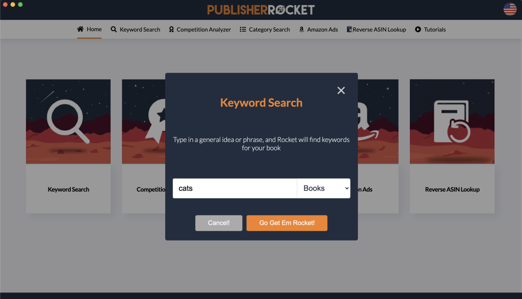 One last time, we head to that beautifully crafted homepage and click on Keyword Search. This time, we are told to enter in a book title, keyword, or phrase and Rocket will generate for us a list of keywords. But before we do this, let’s stop for a second.