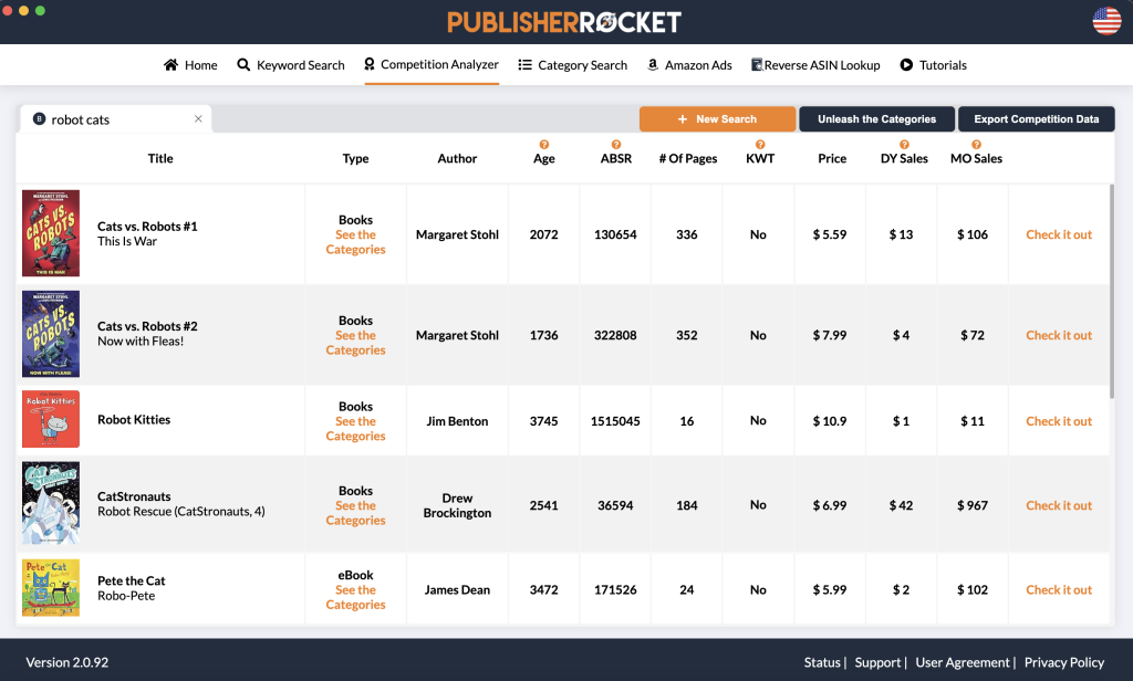 Another one of the Rocket’s major features is its competition analyzer. This is truly an incredible feature. It can let me know exactly who I need to beat as an indie author and who I need to look out for.