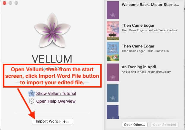 The only file type you can import with Vellum is the Microsoft Word .docx type. Since this is the standard for manuscripts, it’s no surprise. The nice thing is that Vellum automatically formats your chapters based on headings from your MS Word document. It also generates a table of contents so you don’t have to.